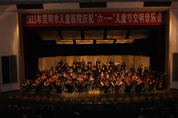 晚上8点,庆祝“六·一”儿童节交响音乐会在昆明剧院隆重举行。省市有关部门领导、省市医疗机构的领导、新闻媒体朋友、省市儿科专家和医院职工共同观看了音乐会,昆明聂耳交响乐团应邀参加表演。