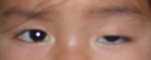 患儿自出生后就发现单眼或双眼睁眼困难,上眼皮抬起困难,总是要仰头看东西。没有早上睁眼大,晚间睁眼小的变化。在小儿眼科就诊后,肌肉注射新斯的明后,双眼睁眼仍困难,无明显改善。