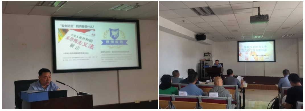 议程三:昆明市反恐办的杨龙大队长结合卫健系统的防范要求,从专业视角出发,对反恐安全防范的相关知识进行了系统讲解。其中涵盖应急预案的制定、应急演练的组织实施以及 “1、3、5 分钟” 的应急处置要求等内容。这些丰富的知识为医院进一步完善反恐防范体系提供了至关重要的指导。