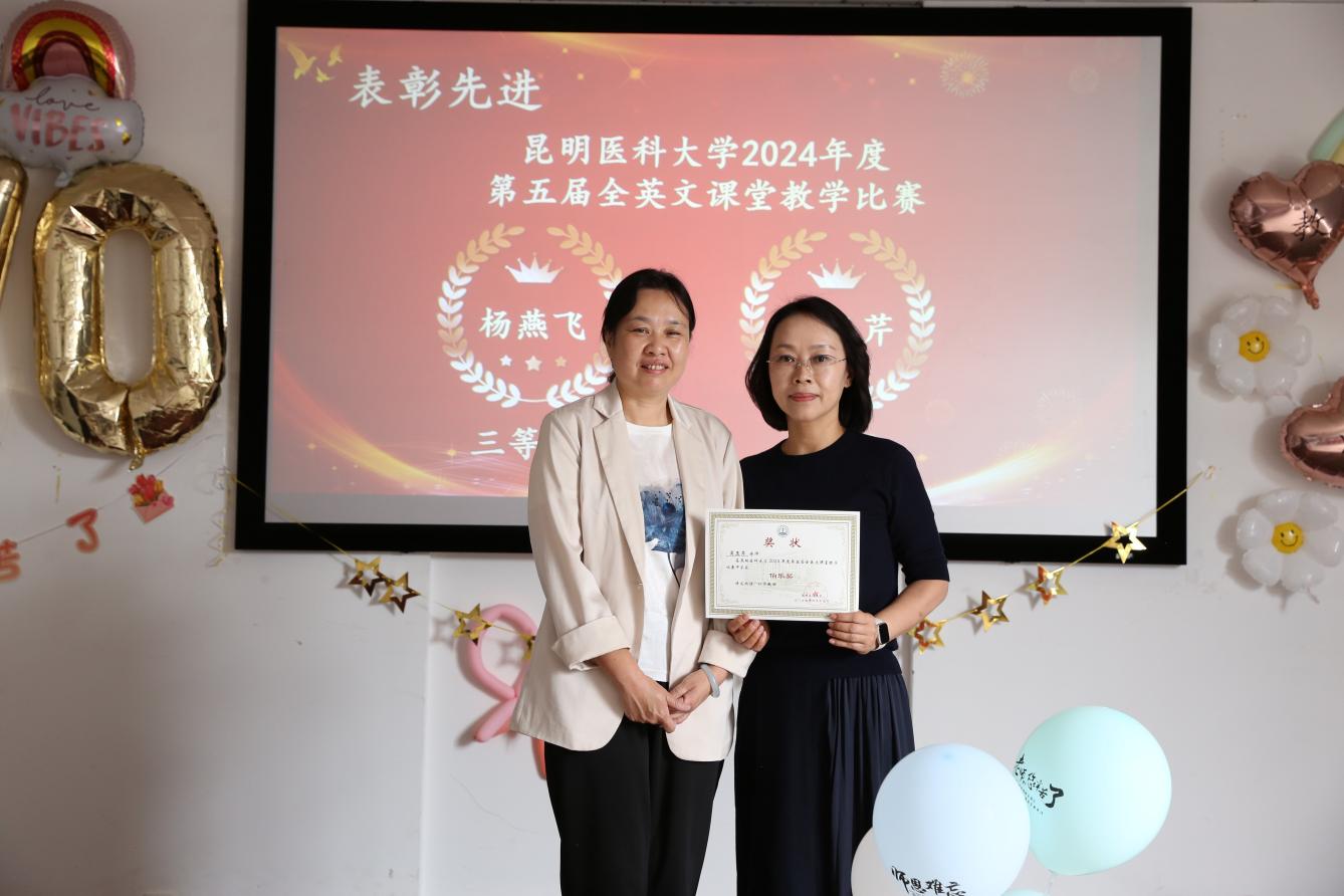 在颁奖环节,张铁松院长宣读了2024年度新遴选昆明医科大学博士研究生指导教师、硕士研究生指导教师名单以及2024年度昆明医科大学先进集体和先进教师、昆明医科大学第三届教师教学创新大赛、昆明医科大学第五届全英文课堂教学讲课比赛获奖名单,张铁松院长、刘芳纪委书记、沈芹宇副书记、吕孟兴副院长为获奖者一一颁奖,肯定了他们在医学教育领域的卓越贡献。