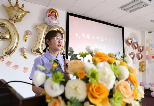 本科实习生代表李忱潞、硕士研究生代表陈新好也分别在会上发言,表达了对老师们的敬意和感激。李忱潞分享了自己在实习过程中的学习心得,陈新好则讲述了科研路上的挑战与成长。两位代表的话语中充满了对儿科医学的热爱和对未来的憧憬,展现了青年学子的精神风貌。