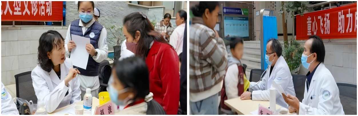 支部书记兼肾内科主任赵波同志、党员兼呼吸科主任李明同志等为当地儿童提供了面对面专业、科学的诊疗服务和健康指导。