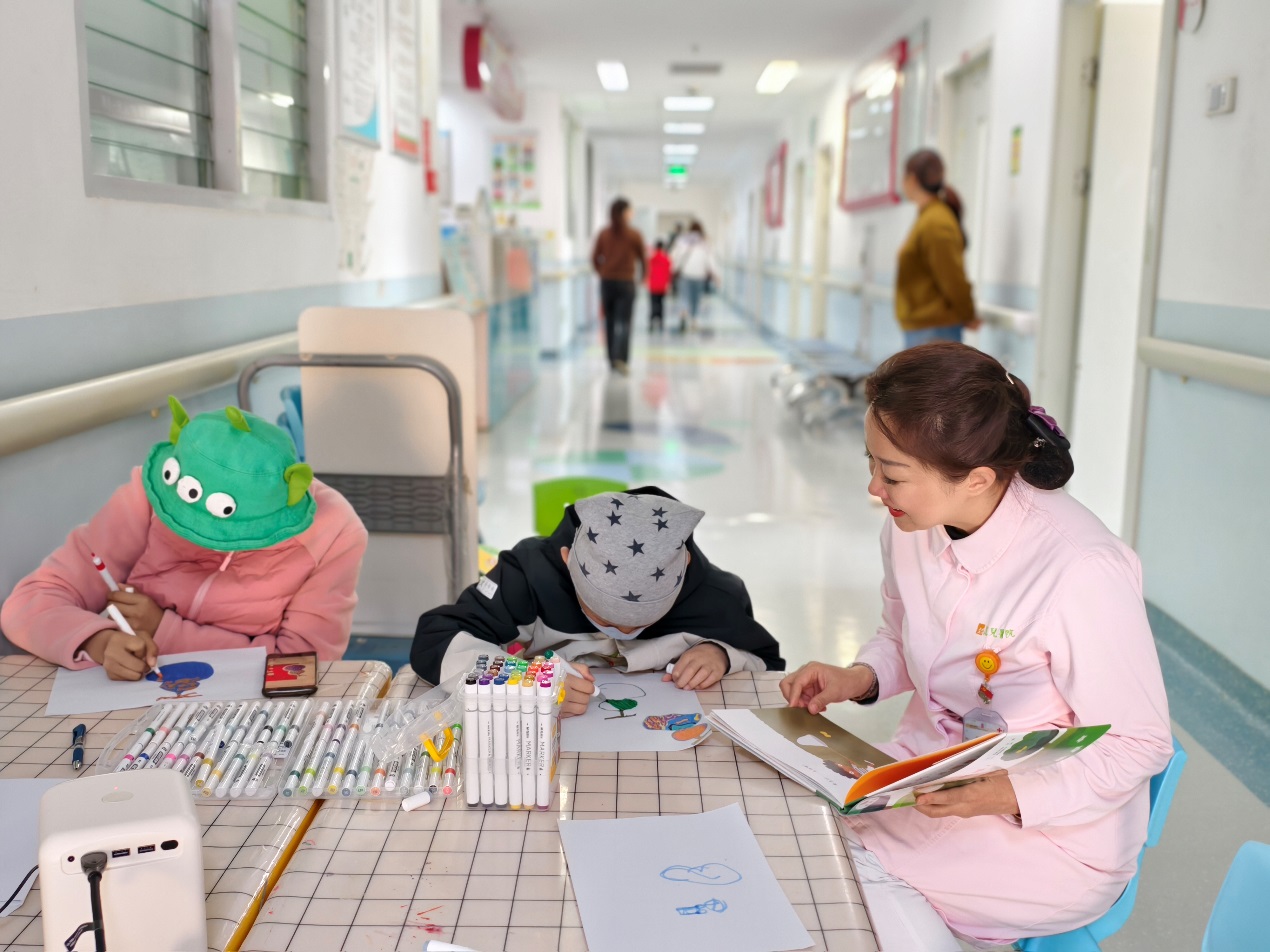 在绘画课上,一名术后情绪低落的患儿通过画作表达对康复的渴望,在医护人员鼓励下逐渐敞开心扉。“课堂成了孩子的情感出口,笑容多了,治疗进程也更顺利。”护士长钟海燕介绍。