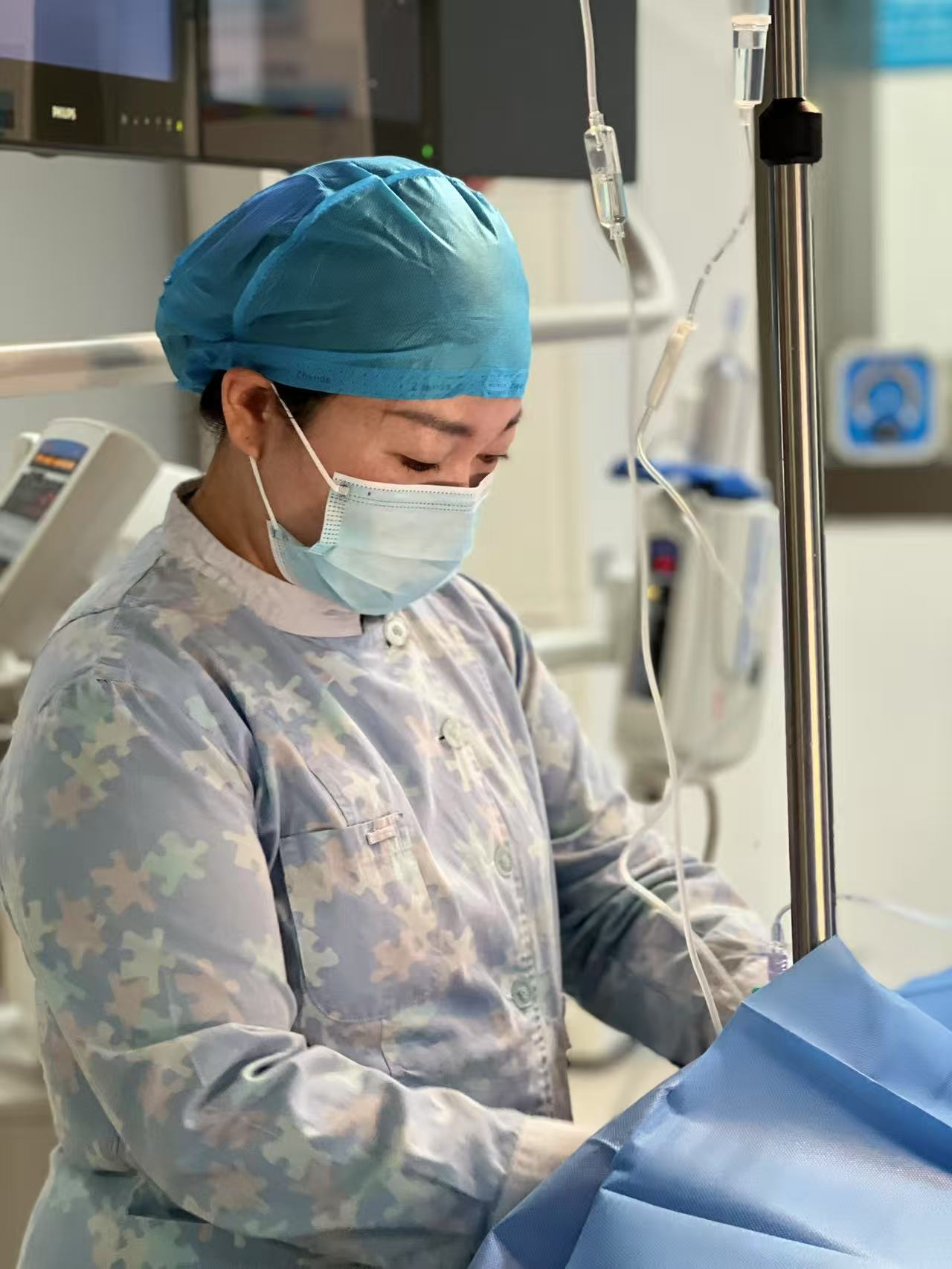 心内科介入护士全程密切配合医生操作:导管操作配合:精准传递取栓导管、导丝等介入器械,实时监测压力波形变化。病情预警系统:持续观测患儿心率、血压、血氧参数,敏锐识别心律失常先兆。应急处理能力:针对术中突发血压、血氧波动及心律失常,迅速遵医嘱给药。