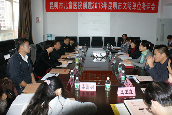 10月16日上午,创建昆明市文明单位考评组廖海滨处长带队一行7人,对我院创建文明单位工作进行了考评。考评会邀请了昆明市卫生局党委副书记廖力微、副调研员周继惠、组宣处副处长孙莉参加,医院胡颂云书记、吴茜院长及院班子成员和各职能部门负责人参加了考评会,胡书记代表医院进行了汇报。